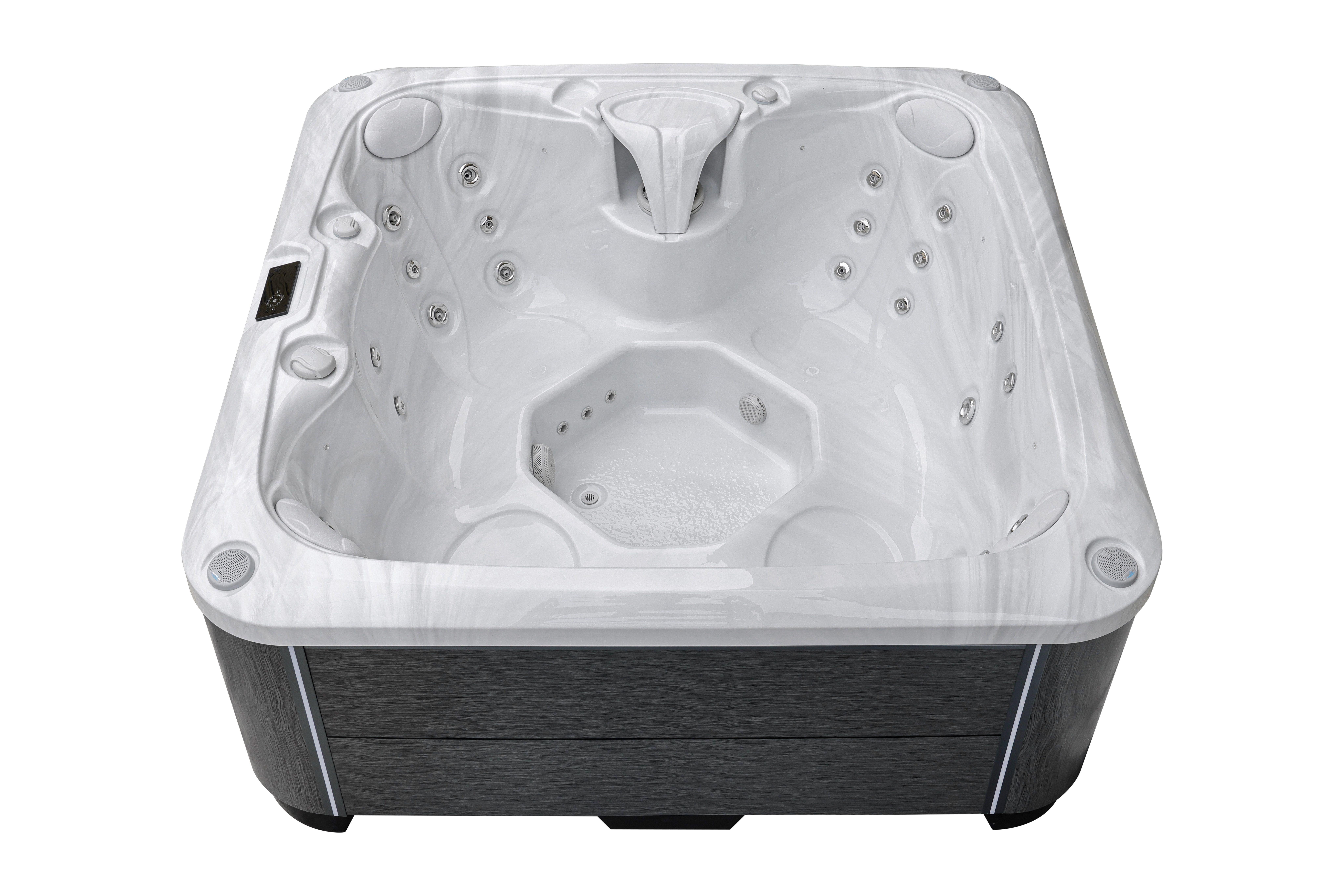 Liod оснащен 33 воздушно-водяными форсунками, которые обеспечивают эффективный массаж всех ключевых групп мышц. Уникальная эргономичная конструкция с семью посадочными местами и четырьмя подголовниками создает невероятный комфорт для отдыха большой компании.