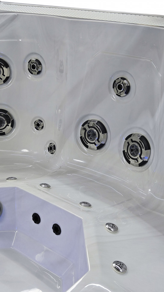 Элитный переливной спа-бассейн с полным оснащением для профессионального гидромассажа и комфортного отдыха. Модель сочетает инновационные технологии и эстетику премиального дизайна.